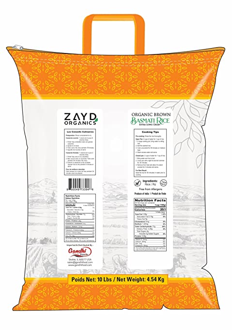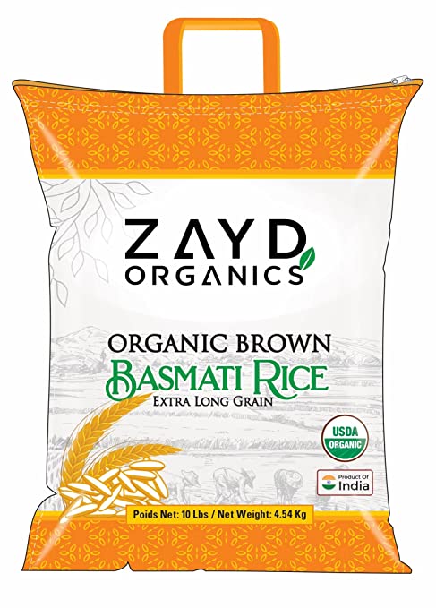 Zayd Organics Brown Basmati Rice, Indian Origin, USDA Organic, 10lbs